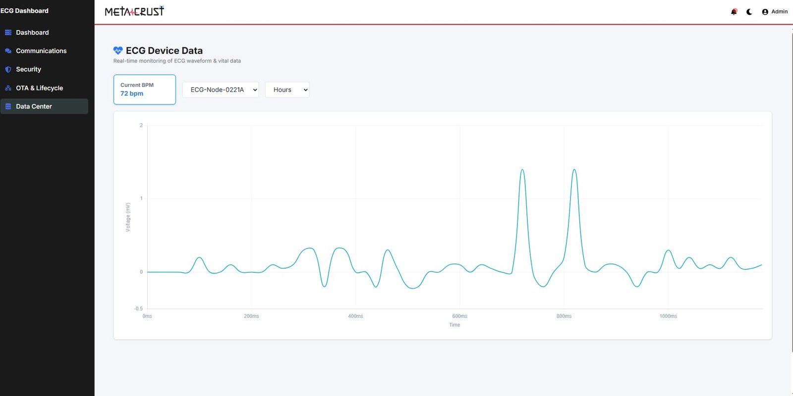 Real-time ECG monitoring dashboard with AWS IoT Core integration and encryption.