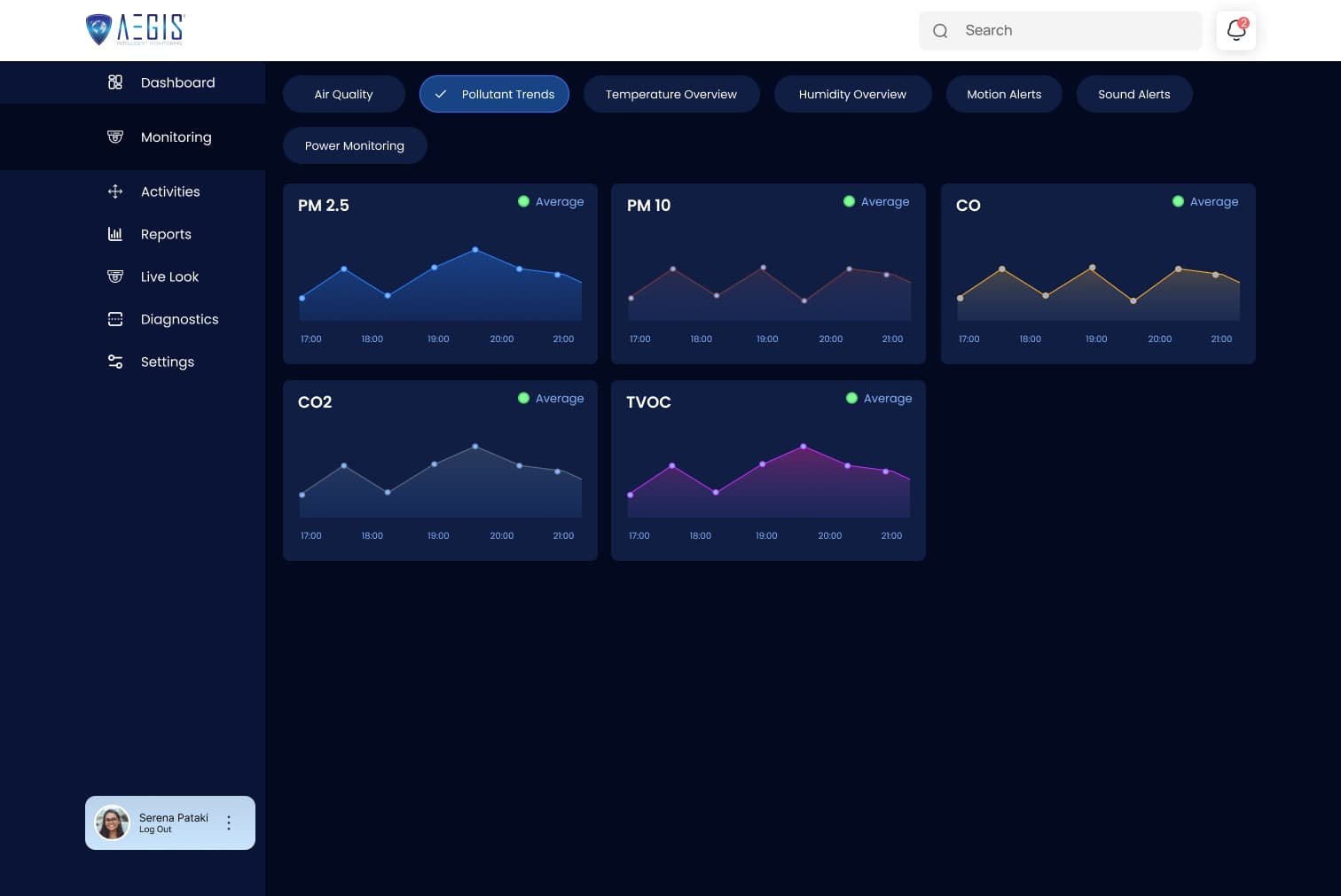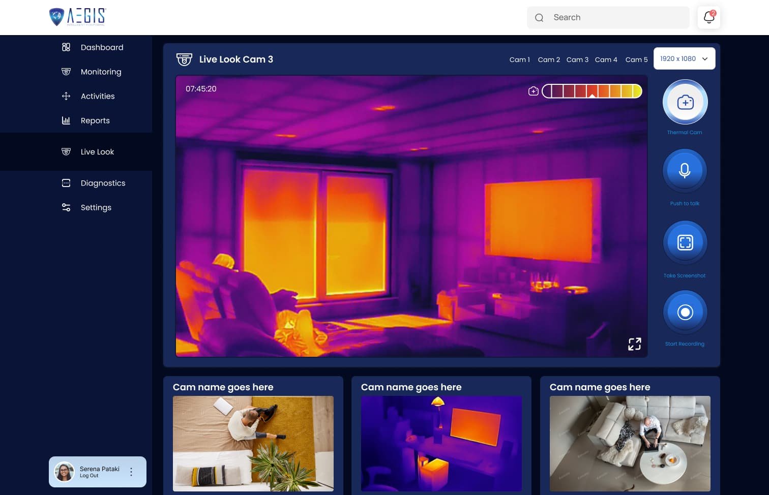 Real-time monitoring dashboard with multi-device connectivity and live camera streaming.